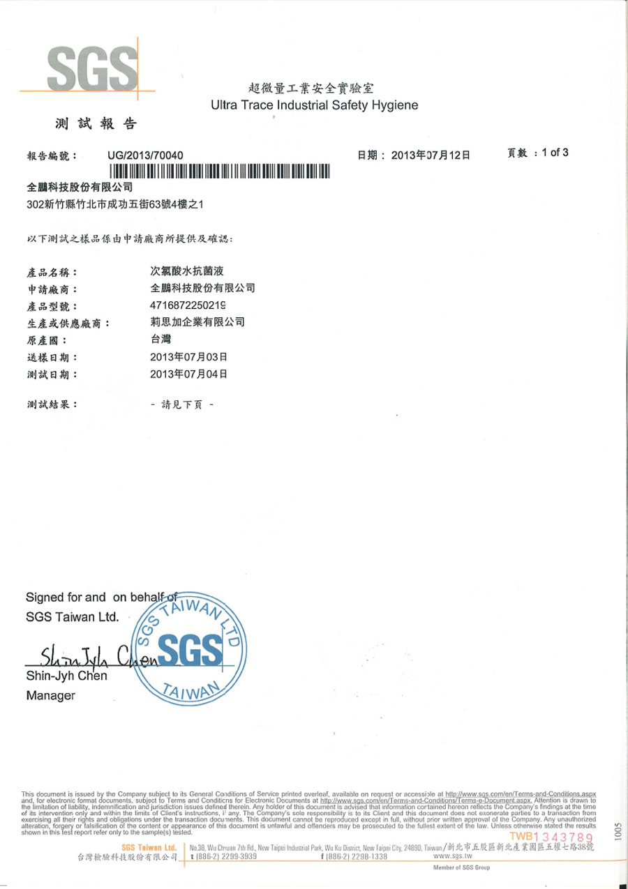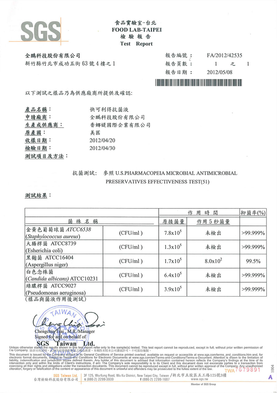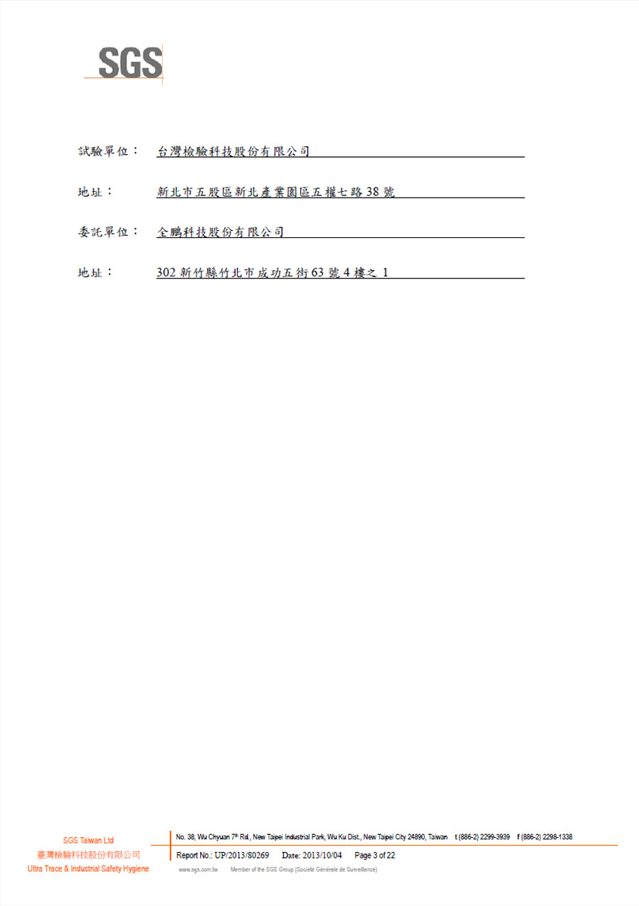 | SGS抗菌檢驗 共1頁 | |