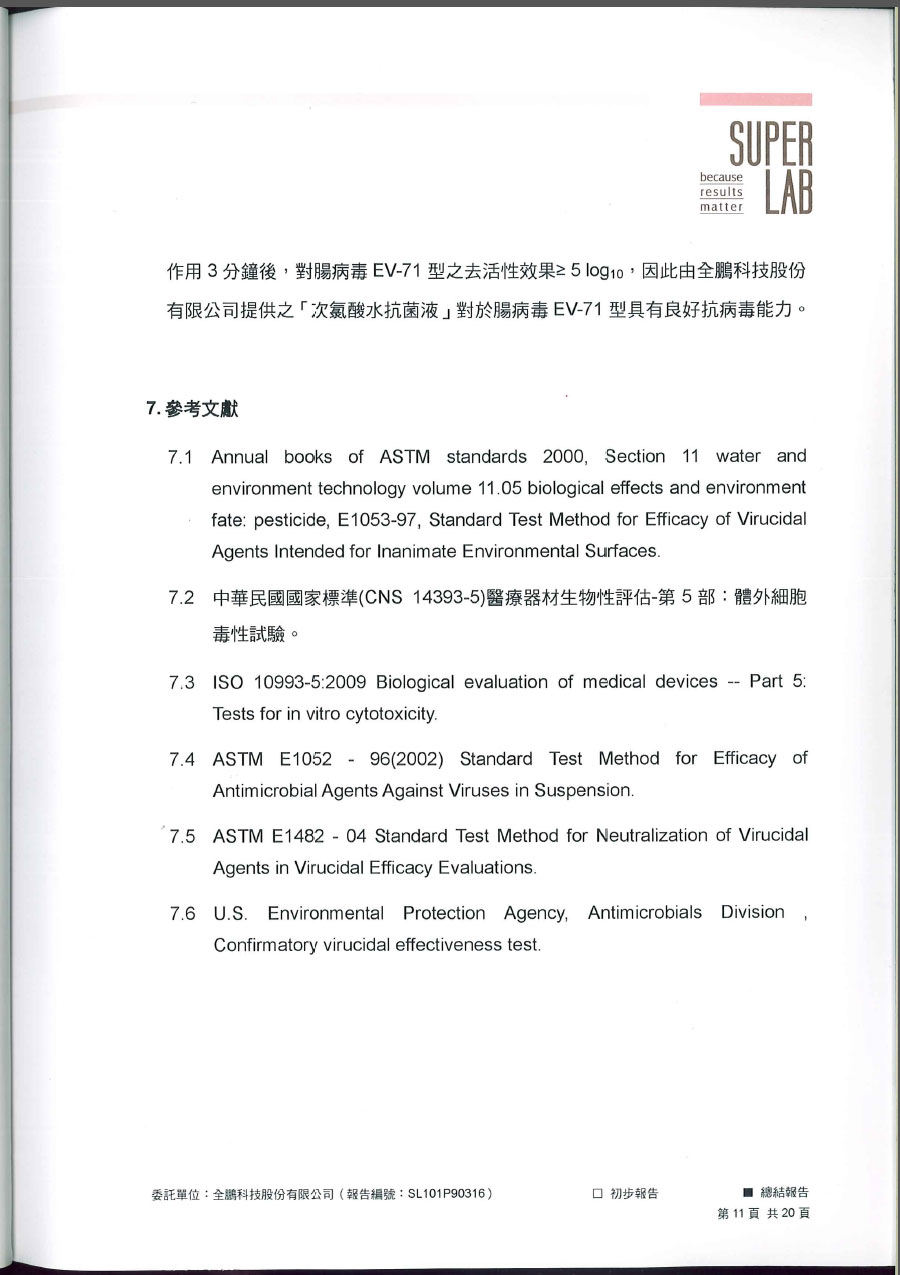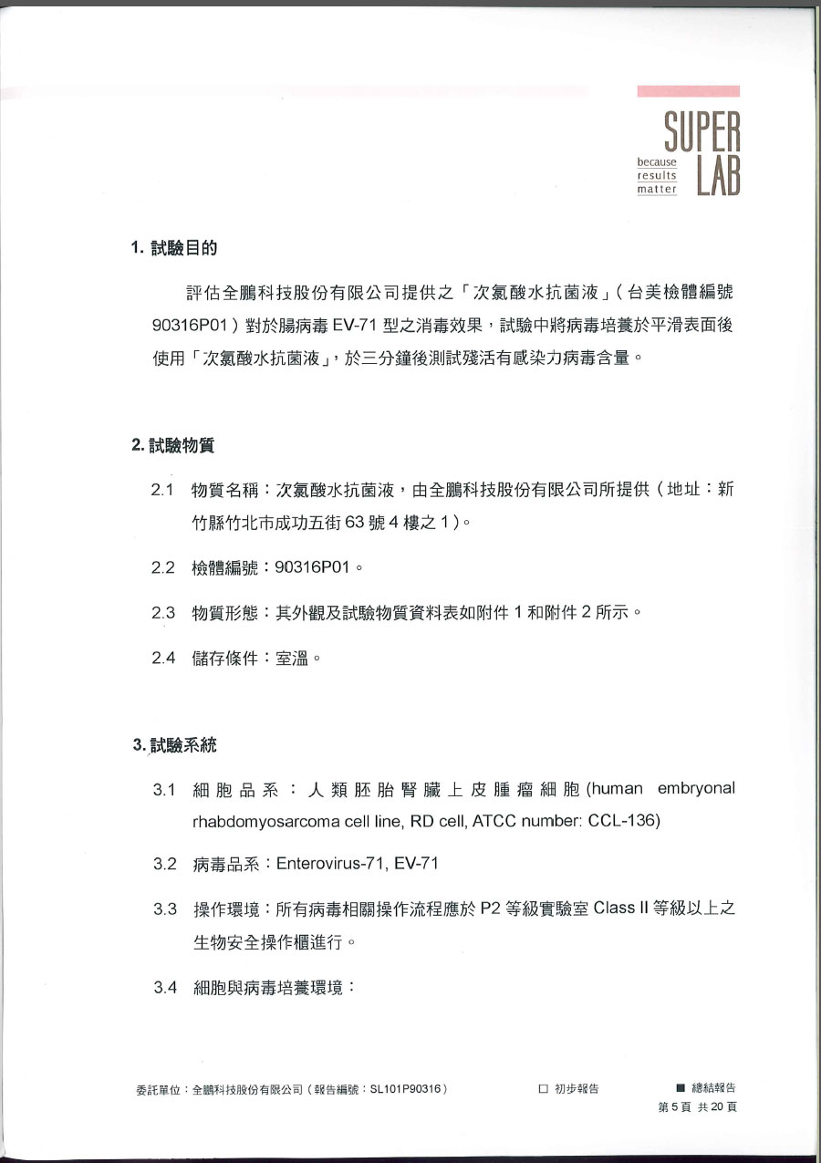 | 有效消滅腸病毒試驗報告 共21頁 | |