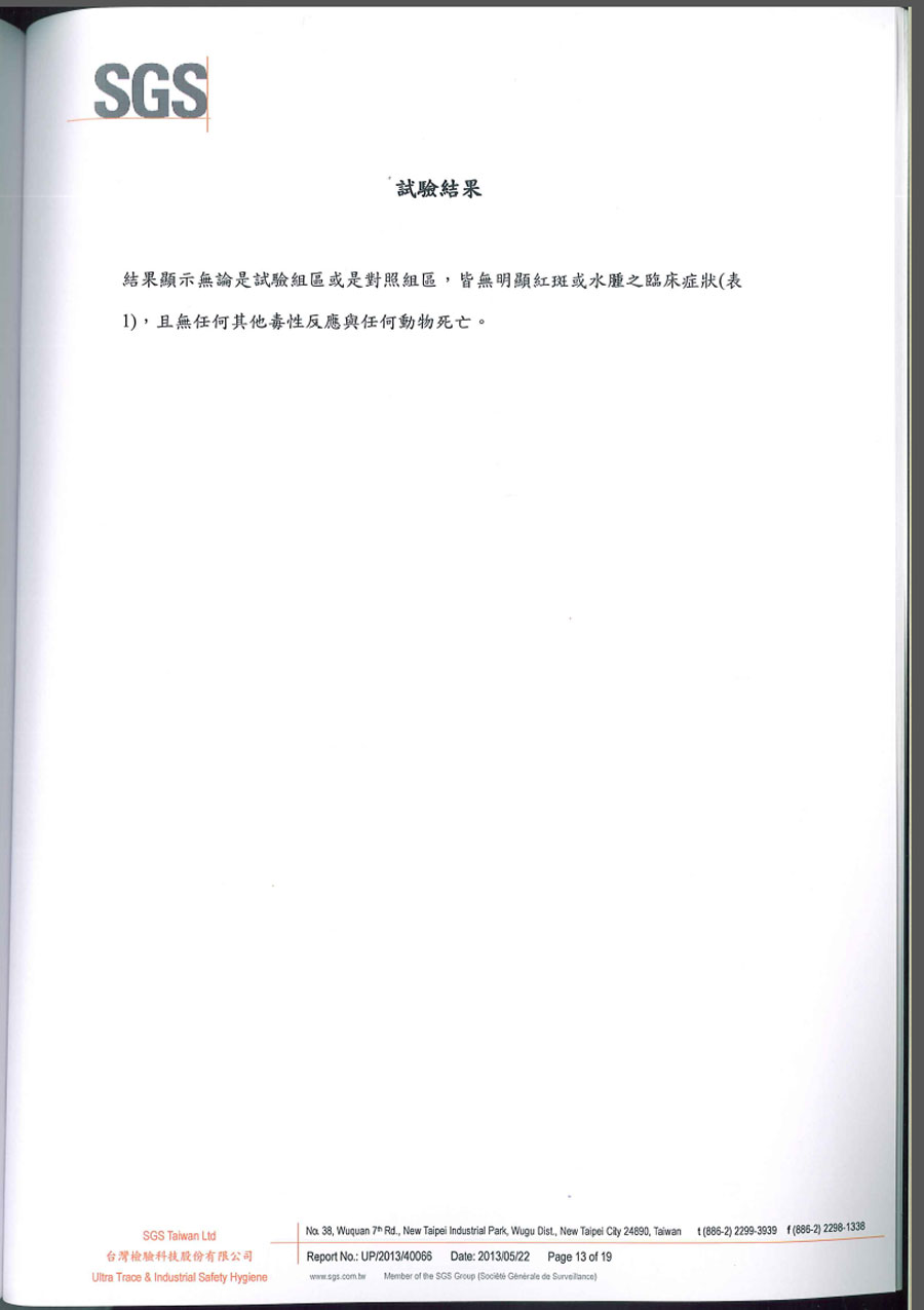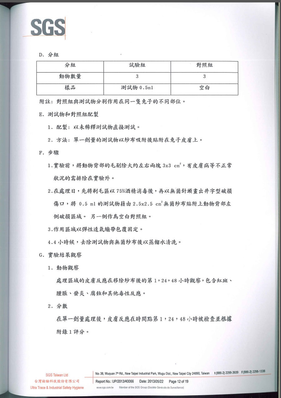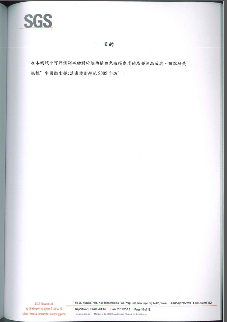 | SGS破損皮膚刺激試驗報告 共19頁 | |