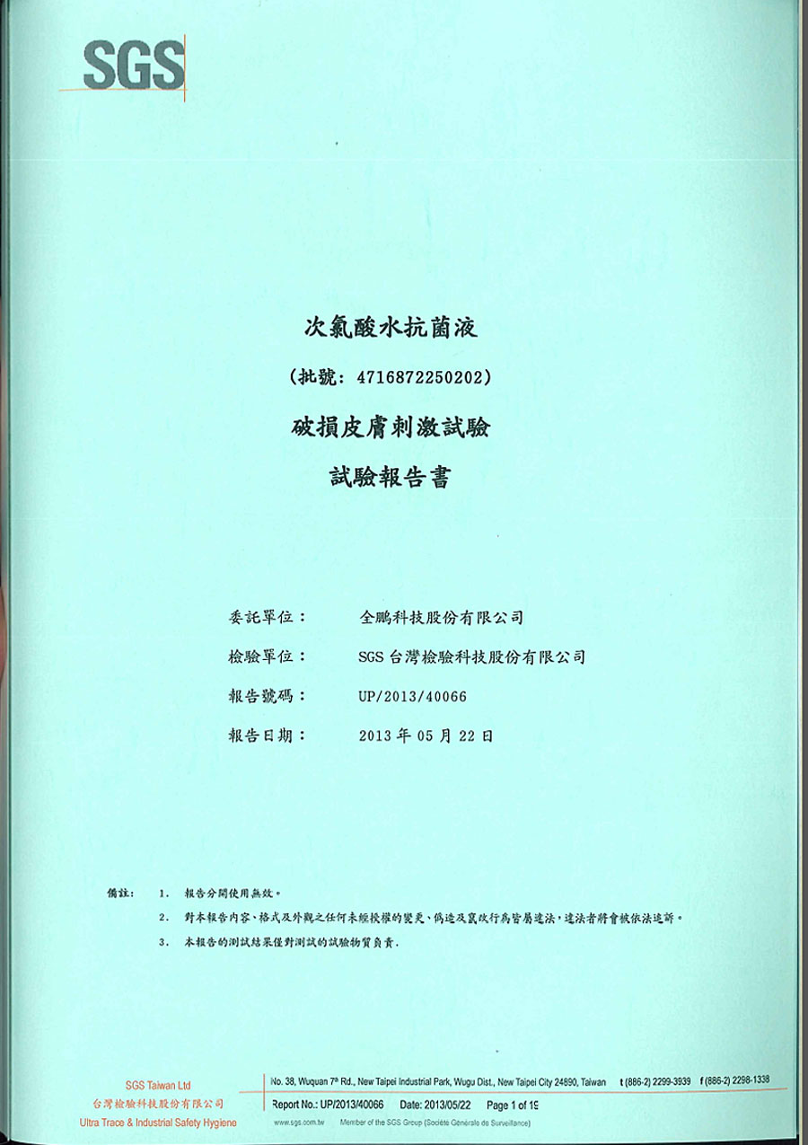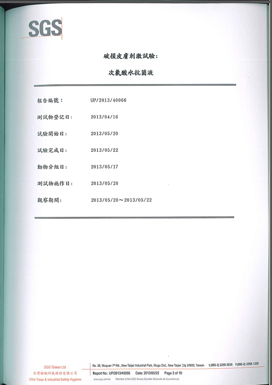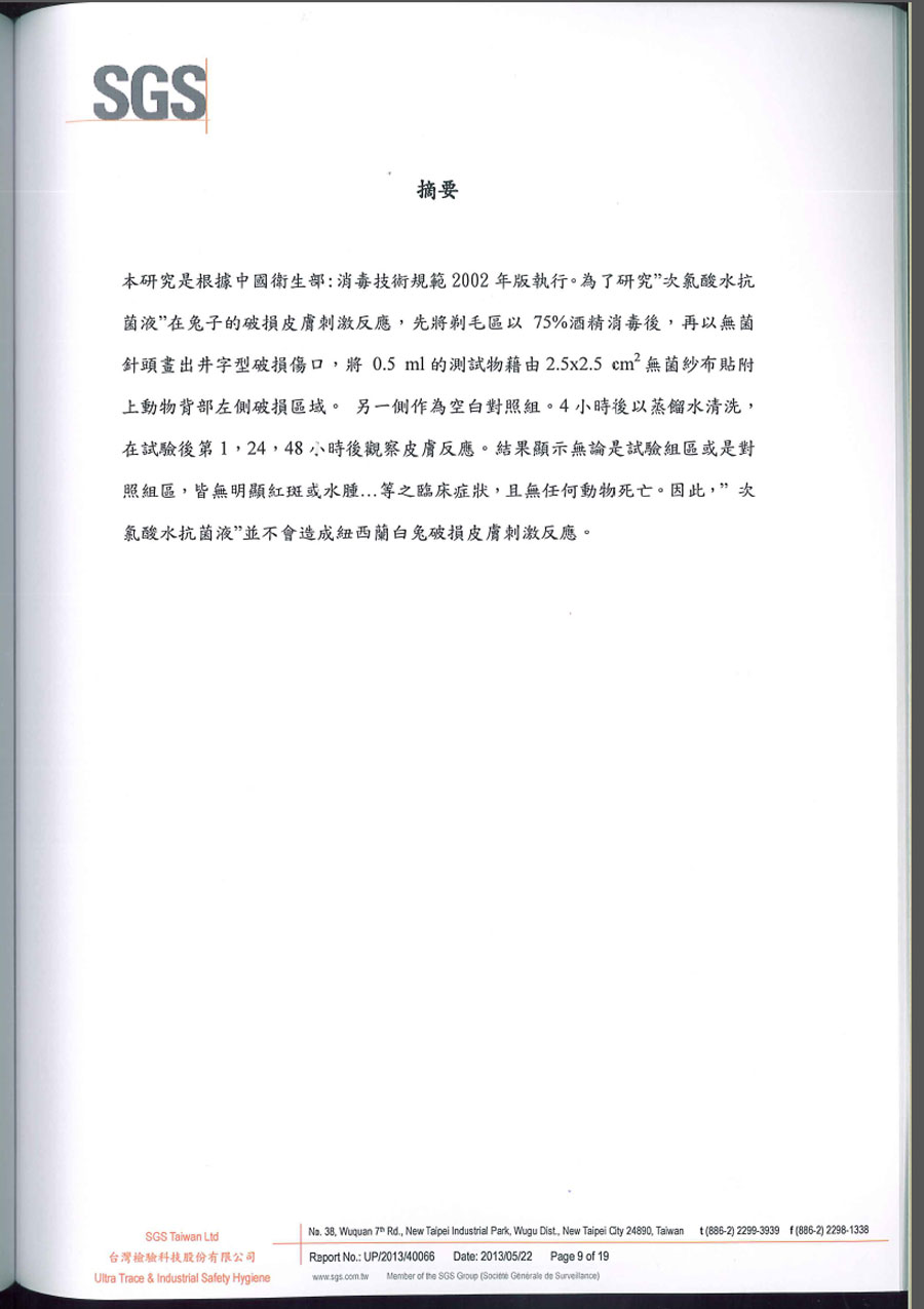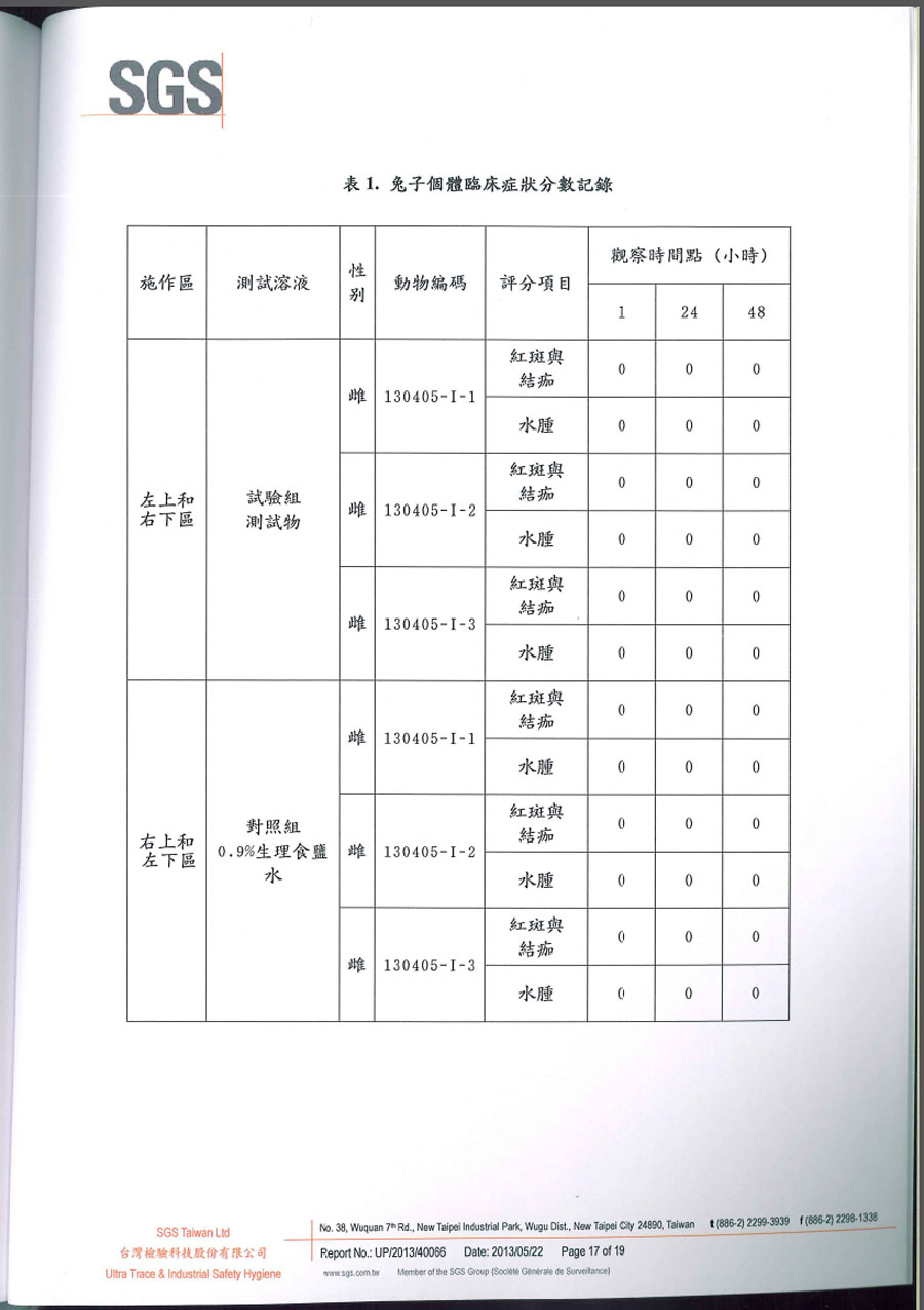 | SGS破損皮膚刺激試驗報告 共19頁 | |