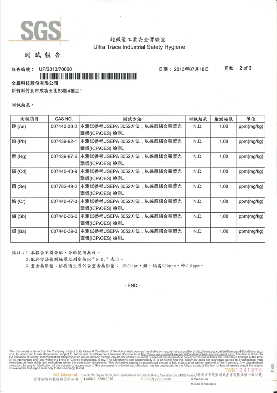 | 未含8大重金屬報告 共3頁 | |